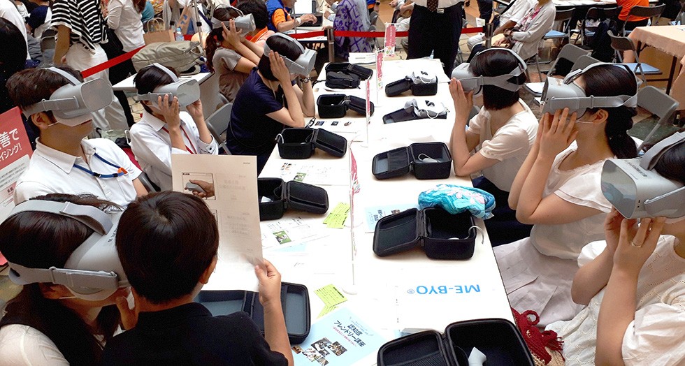 2017年7月と11月に横浜市立浦舟特別支援学校で行われた出張授業では、同校のほか、横浜市、横浜・八景島シーパラダイス、よこはま動物園ズーラシアに、講師派遣などで無償協力していただきました。参加した小中学生からは「世界観に入り込めて、これがVRかと思った」「本当に動物園に行った気持ちになった」などの声が聞かれました。