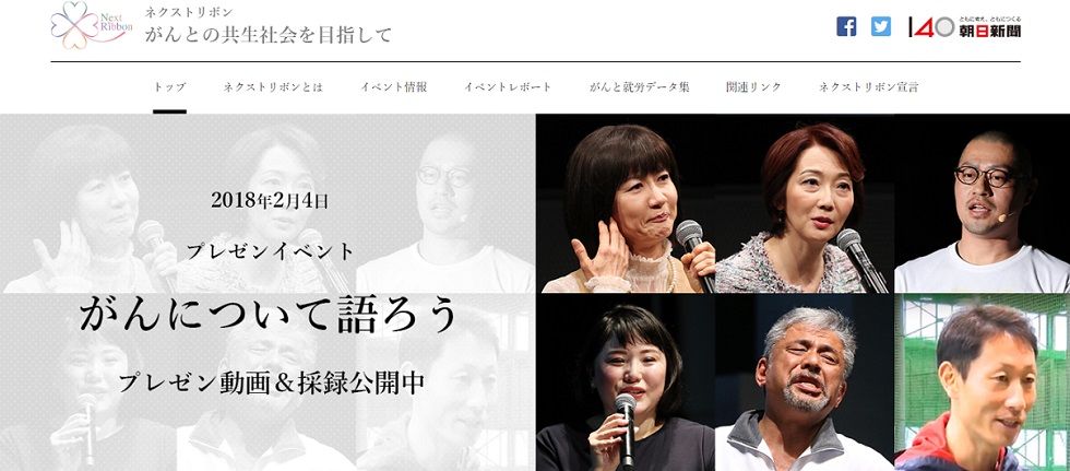 「ネクストリボンプロジェクト」は1月、朝日新聞デジタルに特集ページ「がんとともに」を開設し、紙面連動で関連ニュースを発信。世界対がんデーの2月4日は1、2面、社会面などで記事を多面展開し、著名ながん体験者が語るプレゼンイベント、企業のがん対策についてのシンポ、記者会見も開きました。プレゼン、シンポとも1800人以上の申し込みがあり、AbemaTVの生中継、翌朝のワイドショー、後日の紙面採録などで意義を伝えました。社内の選考委員会では、SDGsの理念である「誰も取り残さない」につながり、SDGsが目指す17ゴールのうち3(すべての人に健康と福祉を)、8(働きがいも経済成長も)、17(パートナーシップで目標を達成しよう)にかなう活動として評価されました。
